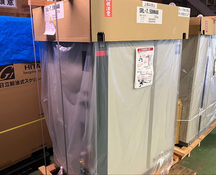 | 機械仕様 | 200・220V 出力:7.7kw 三相60Hz 最高圧力:0.8MPa 吐出し空気量:890L/min |
