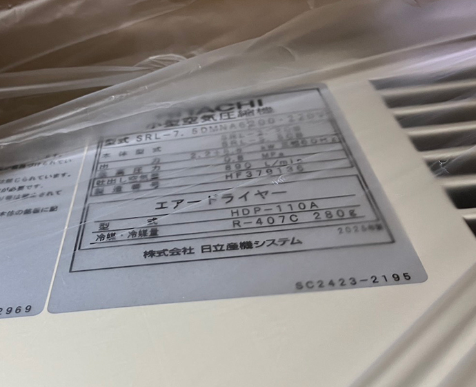 | 付属品 | エアードライヤー 型式:HDP-110A 冷媒・冷媒量:R-407C 280g |