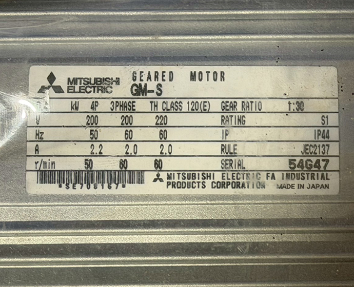 | 機械仕様 | 形名:GM-S 0.4kW 4P 1/30 電源:三相 ■モーター 電圧:200/200/220V 周波数:50/60/60Hz 出力:0.4kW 極数:4P 定格電流:2.2/2.0/2.0A 定格回転速度:1415/1693/1716 r/min 外被構造:全閉外扇形 保護構造:屋内形(IP44相当) 耐熱クラス:120(E) 定格:連続 始動方法:直入れ ■減速機 取付方式:脚取付形 減速比:1/30 潤滑方法:グリース潤滑 ■構造 ブレーキなし 設置場所:屋内(腐食性ガス、オイルミスト、引火性ガス、塵埃などないこと) 周囲温度:-15℃~+40℃(凍結のないこと) 適応規格:JEC、JEM |