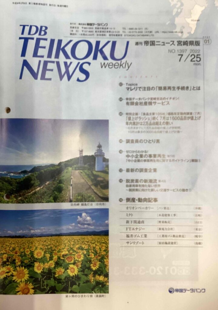 帝国データバンク発行「TDB TEIKOKU NEWS」に掲載されました