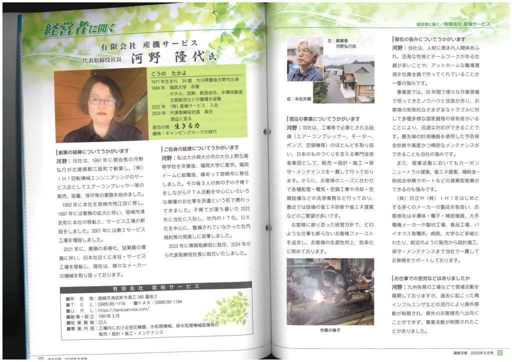 有限会社産機サービス 代表取締役 河野 隆代 が掲載されました。
